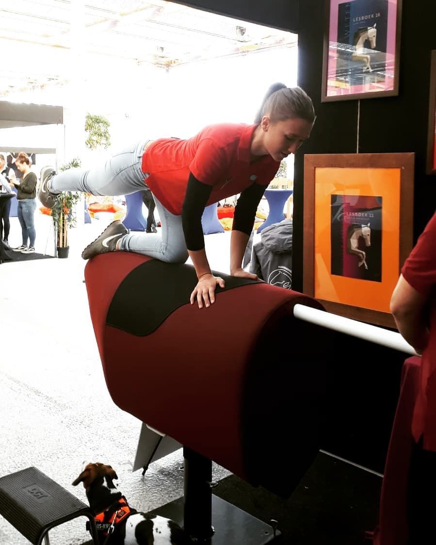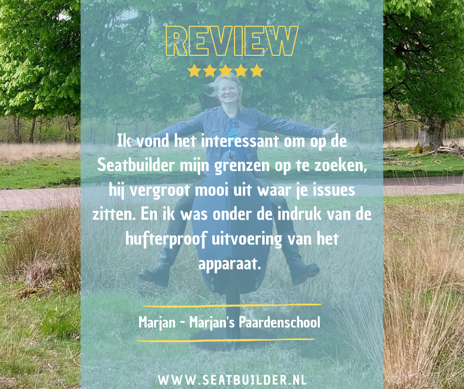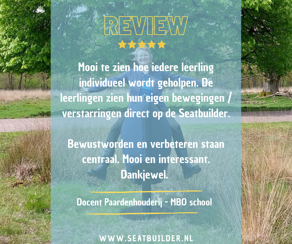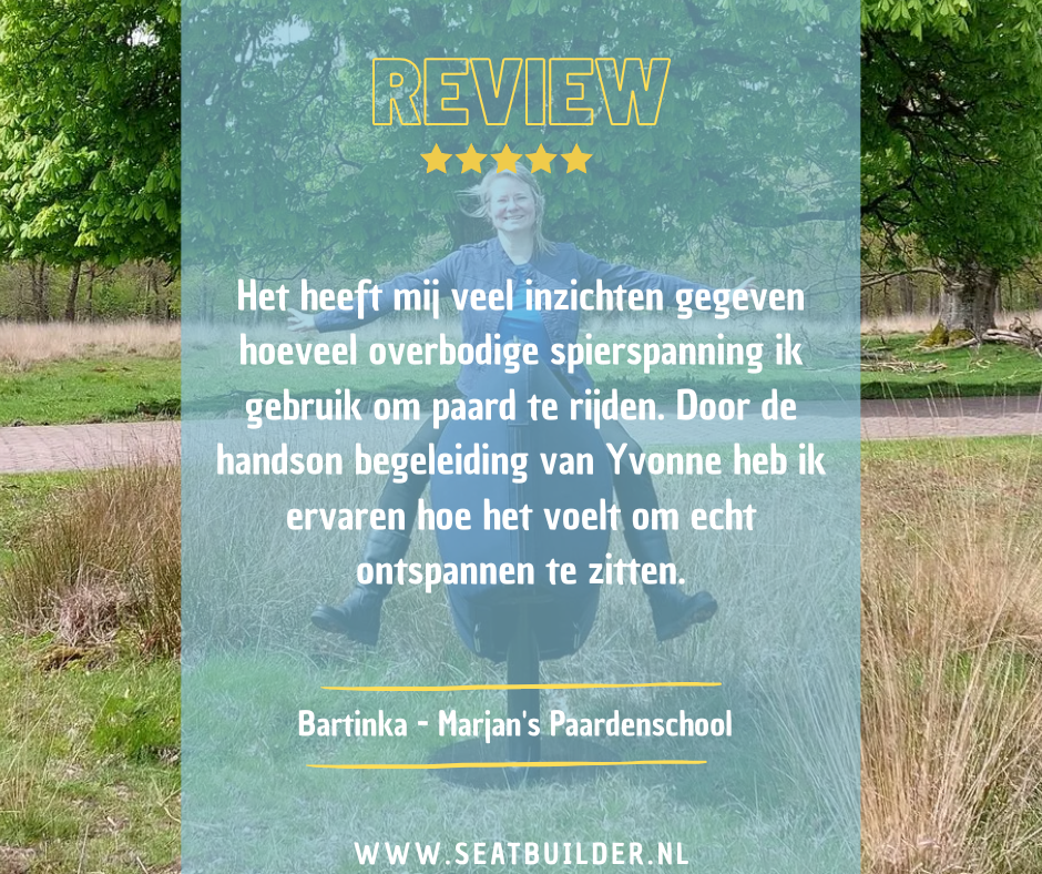 Het is een mechanische evenwichtstoestel waarmee je de ruiter efficient kunt leren bewegen, de reflexen traint, ruitergevoel verder ontwikkelt en technieken kunt verbeteren voor meer zelfvertrouwen en plezier en minder angst of kans op blessures en scheefheid. De Seatbuilder bewijst zich al 11 jaar!